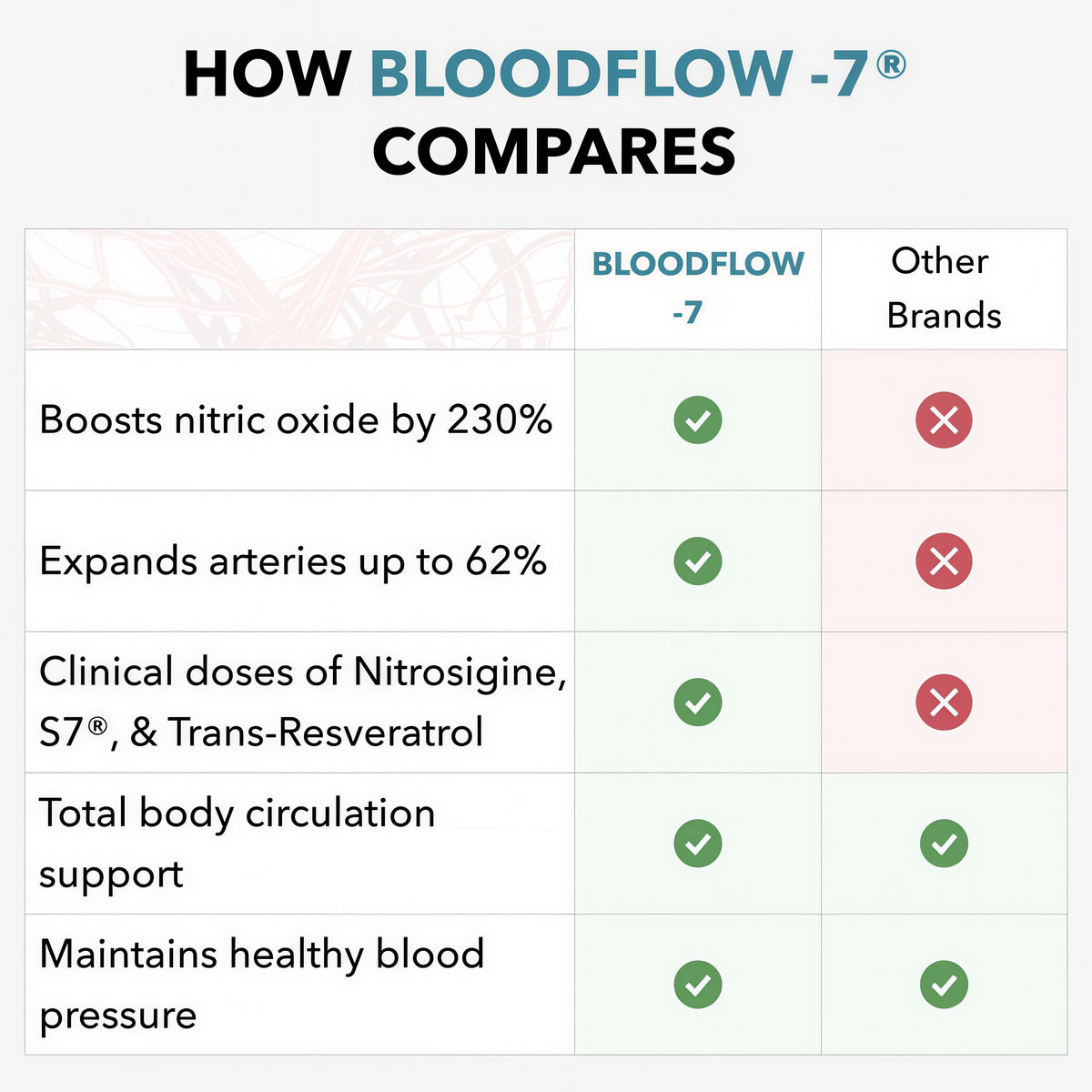 BloodFlow-7 contains cutting-edge, clinically studied ingredients that are both natural and effective to help you rapidly improve circulation and blood flow throughout your entire body: