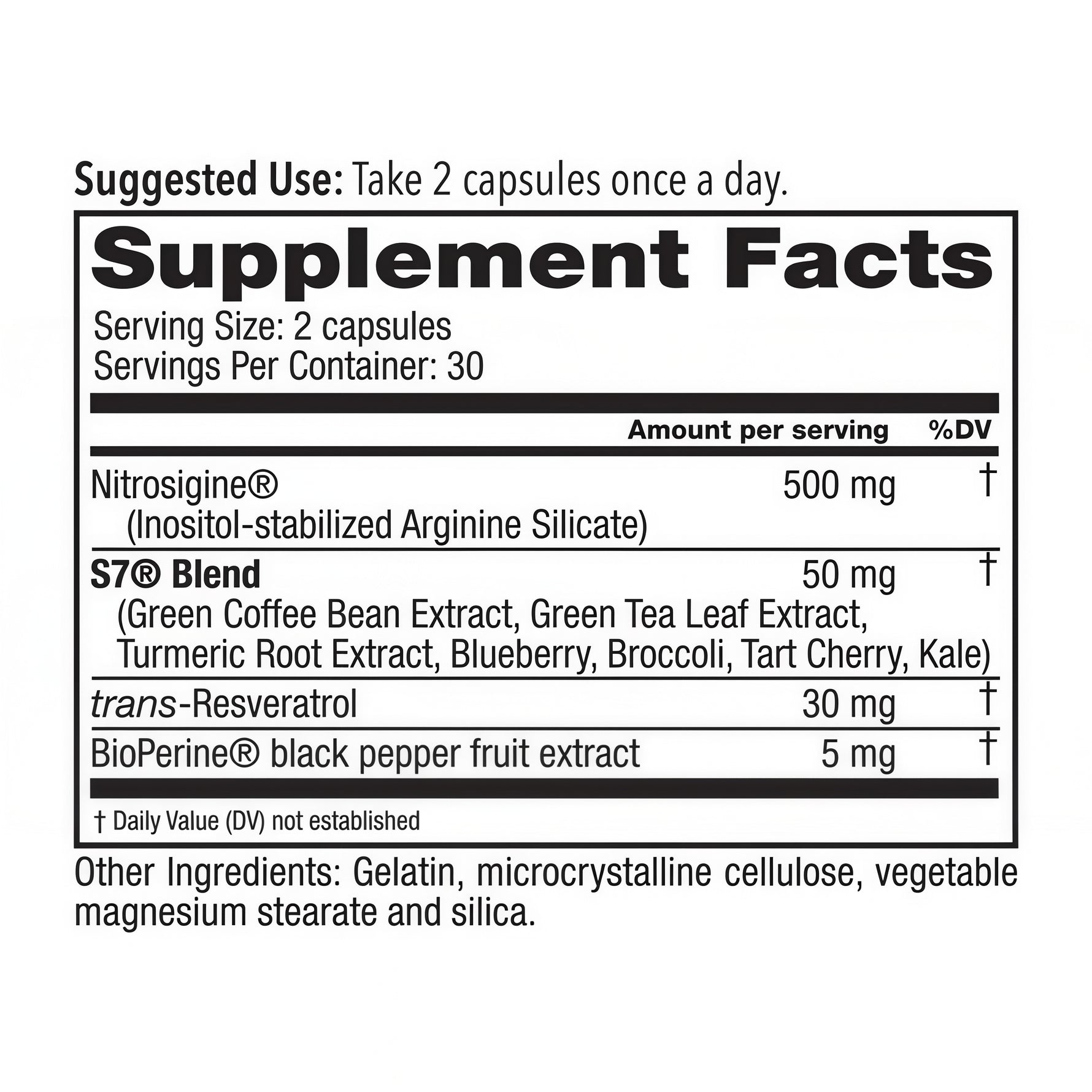 S7 is a plant-based complex of 7 nutrient-rich botanicals clinically shown to ignite your body's own nitric oxide system.